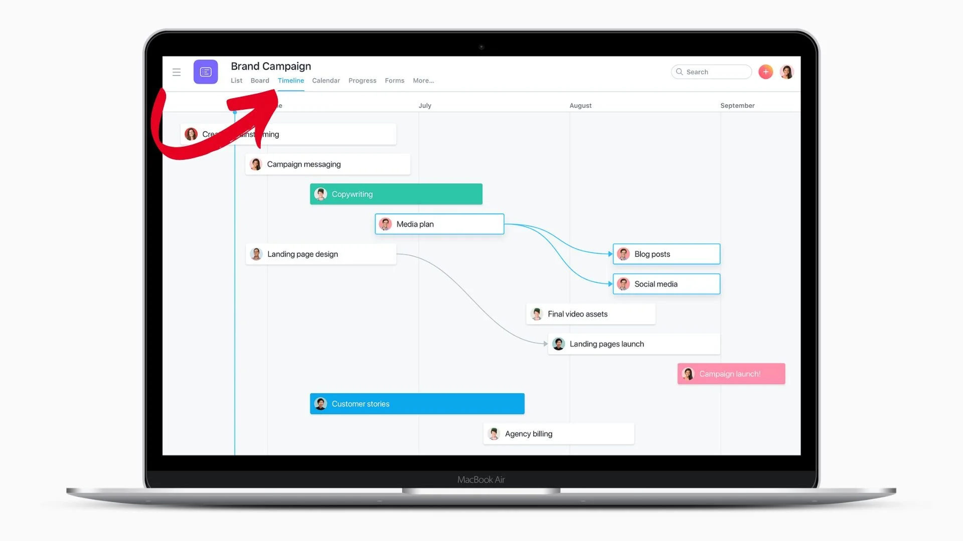 Task Dependencies: With Task Dependencies, you can create a sequence of tasks that must be completed in a specific order. This feature is especially helpful to keep you doing the right things at the right time and spot quickly what will make your deadline slip. Super useful!